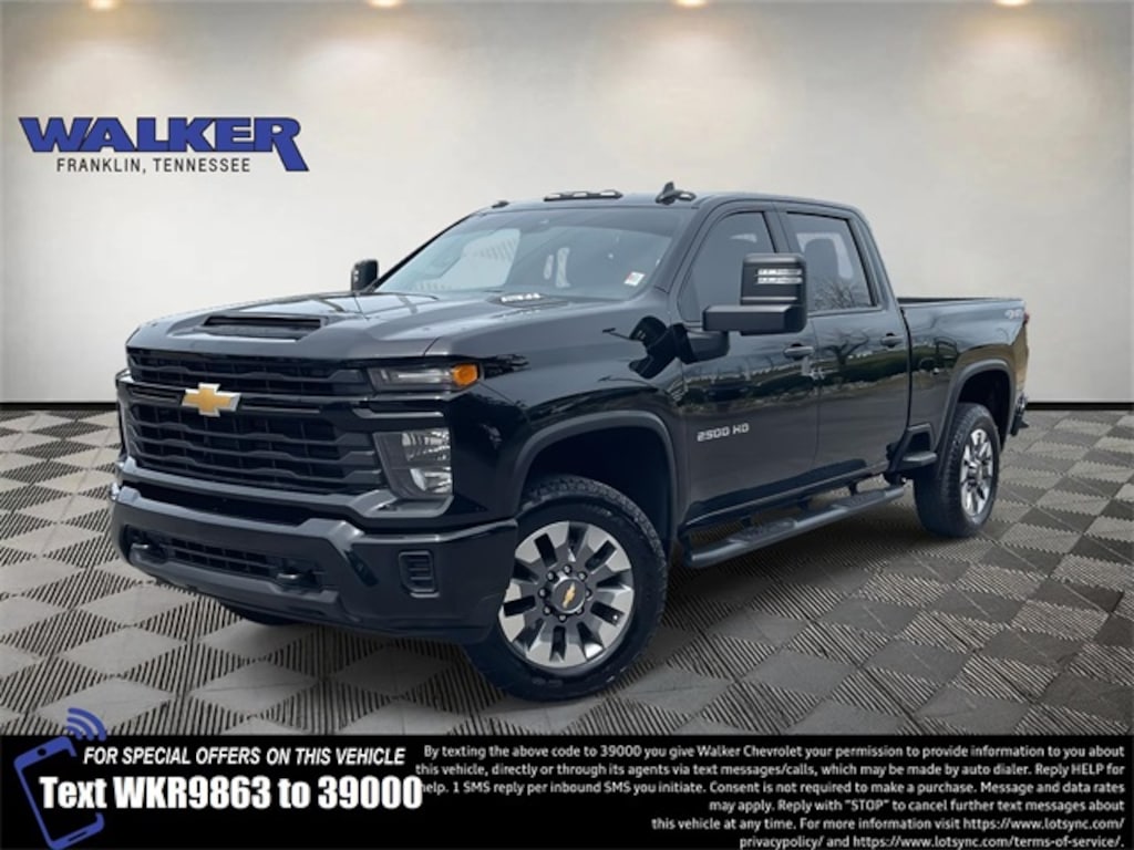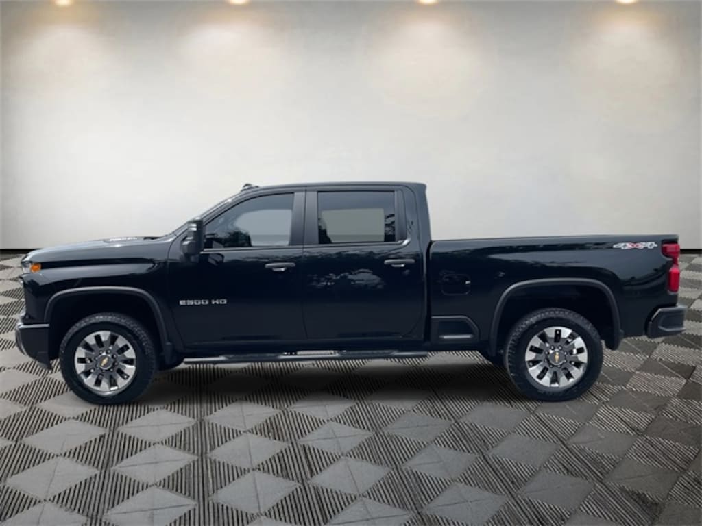 Silverado 2500HD Custom, 4D Crew Cab, 6.6L V8, 10-Speed Automatic, 4WD, Black, Black Cloth, 10-Way Power Driver Seat Adjuster w/Lumbar, 120-Volt Bed Mounted Power Outlet, 120-Volt Interior Power Outlet, 170 Amp Alternator, 2-Speed Electronic Shift Transfer Case, 3.5" Diagonal Monochromatic Display DIC, 3.73 Rear Axle Ratio, 4-Wheel Disc Brakes, 6 Speakers, 6-Speaker Audio System, 720 Cold-Cranking Amps Heavy-Duty Battery, ABS brakes, Air Conditioning, Alloy wheels, AM/FM radio: SiriusXM with 360L, Apple CarPlay/Android Auto, Auto High-beam Headlights, Auto-Dimming Inside Rear-View Mirror, Black Chevytec Spray-On Bedliner, Black Mirror Caps, Bluetooth® For Phone, Brake assist, Chevrolet Connected Access Capable, Cloth Seat Trim, Color-Keyed Carpeting Floor Covering, Compass, Custom Convenience Package, Custom Value Package, CX Safety Package, Deep-Tinted Glass, Delay-off headlights, Driver door bin, Dual front impact airbags, Dual front side impact airbags, Dual Rear USB Ports (Charge Only), Durabed Pickup Bed, Electric Rear-Window Defogger, Electronic Cruise Control w/Set & Resume Speed, Electronic Stability Control, EZ Lift Power Lock & Release Tailgate, Front 40/20/40 Split-Bench Seats w/Lockable Storage, Front anti-roll bar, Front Center Armrest w/Storage, Front reading lights, Front Rubberized Vinyl Floor Mats, Front wheel independent suspension, Fully automatic headlights, Gooseneck/5th Wheel Prep Package, HD Rear Vision Camera, Heated & Auto-Dimming Vertical Trailering Mirrors, Heated door mirrors, Heated Vertical Trailering Mirrors, Illuminated entry, Integrated Trailer Brake Controller, LED Cargo Area Lighting, LED Smoked Amber Roof Marker Lamps, Locking Tailgate, Low tire pressure warning, Manual Tailgate Function w/No EZ Lift, Manual Tilt-Wheel Steering Column, Not Equipped w/Rear USB Ports, Occupant sensing airbag, OnStar & Chevrolet Connected Services Capable, Outside temperature display, Overhead airbag, Overhead console, Panic alarm, Passenger door bin, Passenger vanity mirror, Power Door Locks, Power door mirrors, Power Front Windows w/Driver Express Up/Down, Power Front Windows w/Passenger Express Down, Power Rear Windows w/Express Down, Power steering, Power windows, Preferred Equipment Group 1CX, Premium audio system: Chevrolet Infotainment 3, Push Button Start, Radio: Chevrolet Infotainment 3 System, Rear 60/40 Folding Bench Seat (Folds Up), Rear reading lights, Rear Rubberized Vinyl Floor Mats, Rear step bumper, Remote Keyless Entry, Remote keyless entry, Remote Vehicle Starter System, SiriusXM w/360L, Speed control, Split folding rear seat, Standard Tailgate, Suspension Package, Tachometer, Tilt steering wheel, Traction control, Trip computer, Turn signal indicator mirrors, Unauthorized Entry Theft-Deterrent System, Variably intermittent wipers, Voltmeter, Wheels: 20" 10-Spoke Machined Aluminum, Wi-Fi Hotspot Capable, Wireless Phone Projection.