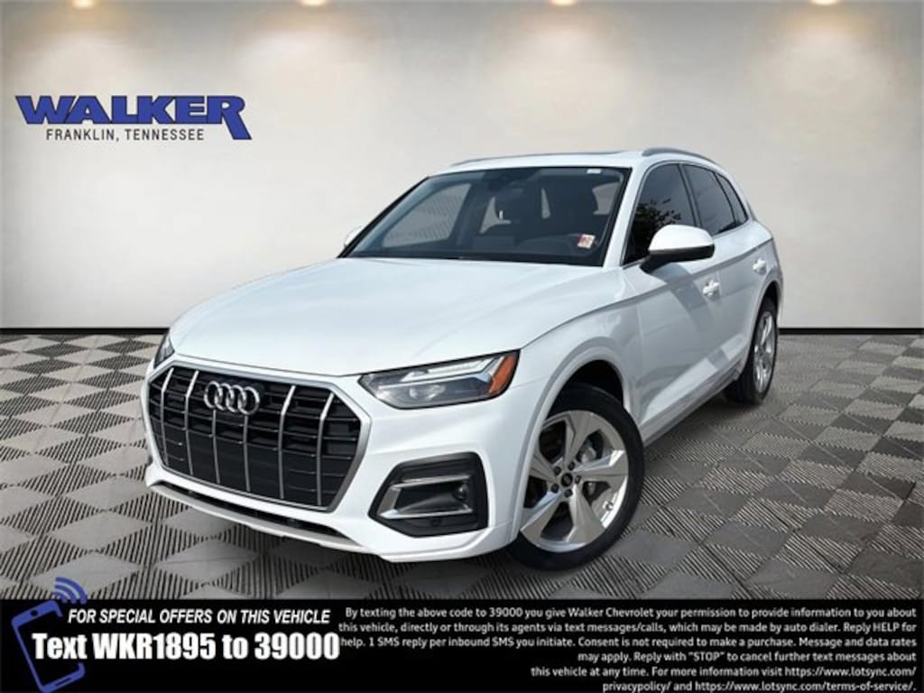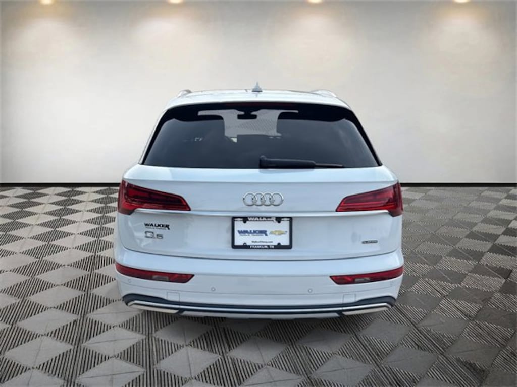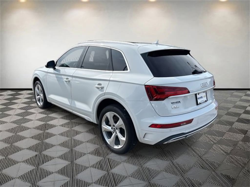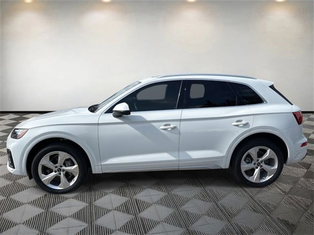 Q5 45 Premium Plus quattro, 4D Sport Utility, 2.0L Turbocharged, 7-Speed Automatic S tronic, quattro, Glacier White, Black Leather, 10 Speakers, 4-Wheel Disc Brakes, 5.302 Axle Ratio, ABS brakes, Adaptive Cruise Control w/Traffic Jam Assist, Air Conditioning, Alloy wheels, AM/FM radio, Audi Active Lane Assist, Audi Advanced Key, Audi Phone Box, Audi Virtual Cockpit Plus, Auto High-beam Headlights, Auto-Dimming Power Folding Exterior Mirrors, Auto-dimming Rear-View mirror, Automatic temperature control, Brake assist, Bumpers: body-color, Compass, Convenience Package, Delay-off headlights, Driver door bin, Driver Seat Memory, Driver vanity mirror, Dual front impact airbags, Dual front side impact airbags, Electronic Stability Control, Emergency communication system: Audi connect CARE, Exterior Parking Camera Rear, Four wheel independent suspension, Front anti-roll bar, Front Bucket Seats, Front Center Armrest, Front dual zone A/C, Front fog lights, Front reading lights, Garage door transmitter: HomeLink, Genuine wood console insert, Genuine wood dashboard insert, Genuine wood door panel insert, Hands-On Detection Steering Wheel, Heated 8-Way Power Front Bucket Seats, Heated door mirrors, Heated front seats, Heated Steering Wheel, Illuminated entry, Leather Seating Surfaces, Leather Shift Knob, Leatherette Covered Center Console & Door Armrests, Low tire pressure warning, Manual Rear Side Window Shades, Occupant sensing airbag, Outside temperature display, Overhead airbag, Overhead console, Panic alarm, Panoramic Sunroof, Passenger door bin, Passenger vanity mirror, Power door mirrors, Power driver seat, Power Liftgate, Power passenger seat, Power steering, Power windows, Premium Plus Package, Radio data system, Radio: Audi Sound System, Rain sensing wipers, Rear air conditioning, Rear anti-roll bar, Rear fog lights, Rear reading lights, Rear seat center armrest, Rear window defroster, Rear window wiper, Remote keyless entry, Roof rack, Security system, SiriusXM All Access Service, Speed control, Speed-sensing steering, Speed-Sensitive Wipers, Split folding rear seat, Spoiler, Steering wheel mounted audio controls, Tachometer, Telescoping steering wheel, Tilt steering wheel, Top View Camera System, Traction control, Trip computer, Turn signal indicator mirrors, Variably intermittent wipers, Ventilated Front Sport Seats w/4-Way Power Lumbar, Warm Weather Package, Wheels: 19 5-Double-Arm Design Bi-Color Finish.