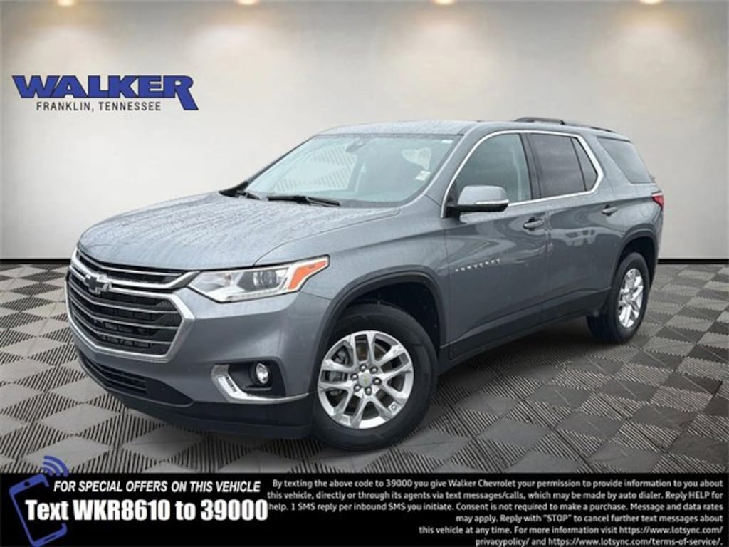 Traverse LT 1LT, 4D Sport Utility, 3.6L V6 SIDI VVT, 9-Speed Automatic, FWD, Satin Steel Metallic, Jet Black Cloth, 3.49 Axle Ratio, 3rd row seats: split-bench, 4-Wheel Disc Brakes, 4.2 Multi-Color Enhanced Driver Instrument Display, 6 Speakers, 7-Passenger Seating (2-2-3 Seating Configuration), ABS brakes, Air Conditioning, Alloy wheels, AM/FM radio: SiriusXM, Apple CarPlay/Android Auto, Automatic Emergency Braking, Automatic Heated Steering Wheel, Automatic temperature control, Brake assist, Bumpers: body-color, Compass, Convenience & Driver Confidence Package, Delay-off headlights, Driver Confidence II Package, Driver door bin, Driver vanity mirror, Dual front impact airbags, Dual front side impact airbags, Electronic Stability Control, Emergency communication system: OnStar and Chevrolet connected services capable, Following Distance Indicator, Forward Collision Alert, Four wheel independent suspension, Front & Rear Black Bowtie Emblems (LPO), Front anti-roll bar, Front Bucket Seats, Front Center Armrest, Front dual zone A/C, Front fog lights, Front Pedestrian Braking, Front reading lights, Fully automatic headlights, Heated door mirrors, Heated Driver & Front Passenger Seats, Heavy-Duty Cooling System, High-Intensity Discharge Headlights, Hitch Guidance w/Hitch View, Illuminated entry, IntelliBeam Auto High Beam Control Headlamps, Lane Change Alert w/Side Blind Zone Alert, Lane Keep Assist w/Lane Departure Warning, Leather steering wheel, Low tire pressure warning, Occupant sensing airbag, Outside temperature display, Overhead airbag, Overhead console, Panic alarm, Passenger door bin, Passenger vanity mirror, Power door mirrors, Power driver seat, Power steering, Power windows, Preferred Equipment Group 1LT, Premium Cloth Seat Trim, Radio data system, Radio: Chevrolet Infotainment 3 Plus System, Radio: Chevrolet Infotainment System AM/FM Stereo, Rear air conditioning, Rear anti-roll bar, Rear Cross Traffic Alert, Rear Park Assist w/Audible Warning, Rear Power Liftgate, Rear reading lights, Rear window defroster, Rear window wiper, Remote keyless entry, Remote Start, Roof rack: rails only, Security system, SiriusXM Radio, SiriusXM w/360L, Speed control, Speed-sensing steering, Spoiler, Steering wheel mounted audio controls, Tachometer, Telescoping steering wheel, Tilt steering wheel, Traction control, Trailering Assist Guidelines, Trailering Equipment, Trip computer, Turn signal indicator mirrors, Universal Home Remote, Variably intermittent wipers, Voltmeter, Wheels: 18 Bright Silver Painted Aluminum.