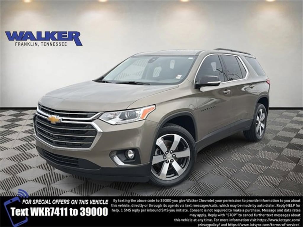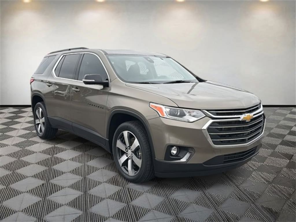 Traverse 3LT, 4D Sport Utility, 3.6L V6 SIDI VVT, 9-Speed Automatic, FWD, Stone Gray Metallic, Gray Leather, 120-Volt Power Outlet, 3.49 Axle Ratio, 3rd row seats: split-bench, 4-Wheel Disc Brakes, 6 Speakers, 7-Passenger Seating (2-2-3 Seating Configuration), ABS brakes, Air Conditioning, Alloy wheels, AM/FM radio: SiriusXM, Apple CarPlay/Android Auto, Automatic Emergency Braking, Automatic Heated Steering Wheel, Automatic temperature control, Black Finish Grille (LPO), Black Fog Lamp Trim (LPO), Black Mirror Caps (LPO), Black Rear License Plate Applique (LPO), Blackout Package (LPO), Bose Premium 10-Speaker Audio System Feature, Brake assist, Bumpers: body-color, Compass, Delay-off headlights, Driver Confidence II Package, Driver door bin, Driver vanity mirror, Dual front impact airbags, Dual front side impact airbags, Electronic Stability Control, Emergency communication system: OnStar and Chevrolet connected services capable, Following Distance Indicator, Forward Collision Alert, Four wheel independent suspension, Front & Rear Black Bowtie Emblems (LPO), Front anti-roll bar, Front Bucket Seats, Front Center Armrest, Front dual zone A/C, Front fog lights, Front Pedestrian Braking, Front reading lights, Fully automatic headlights, Garage door transmitter, Gloss Black Emblem Kit (LPO), HD Surround Vision, Heated door mirrors, Heated front seats, High-Intensity Discharge Headlights, Illuminated entry, IntelliBeam Auto High Beam Control Headlamps, Lane Keep Assist w/Lane Departure Warning, Leather steering wheel, Leather-Appointed Seat Trim, Low tire pressure warning, LT Premium Package, Occupant sensing airbag, Outside temperature display, Overhead airbag, Overhead console, Panic alarm, Passenger door bin, Passenger vanity mirror, Power door mirrors, Power driver seat, Power Liftgate, Power passenger seat, Power steering, Power windows, Preferred Equipment Group 3LT, Premium audio system: Chevrolet MyLink, Radio data system, Radio: Chevrolet Infotainment 3 Plus System, Radio: Chevrolet Infotainment 3 Premium System, Rear air conditioning, Rear anti-roll bar, Rear Camera Mirror, Rear reading lights, Rear window defroster, Rear window wiper, Remote keyless entry, Roof rack: rails only, Security system, SiriusXM w/360L, Speed control, Speed-sensing steering, Spoiler, Steering wheel mounted audio controls, Tachometer, Telescoping steering wheel, Tilt steering wheel, Traction control, Trip computer, Turn signal indicator mirrors, Variably intermittent wipers, Voltmeter, Wheels: 20 Machined Face Aluminum.