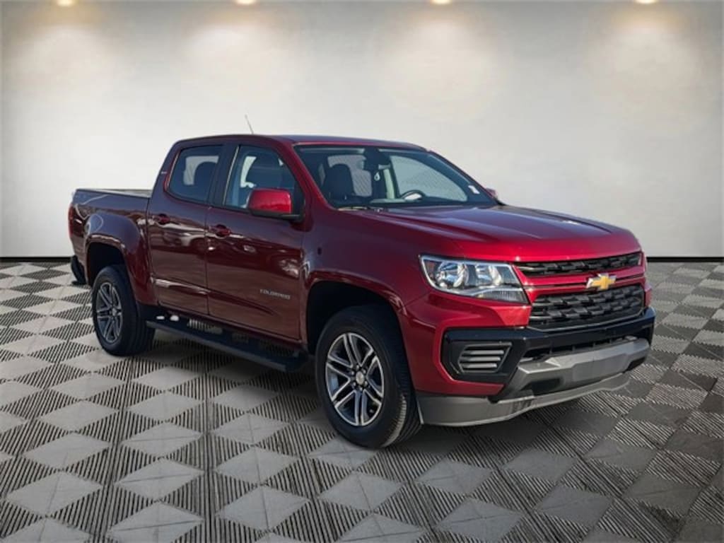 Colorado Work Truck, 4D Crew Cab, 2.5L I4 DI DOHC VVT, 6-Speed Automatic, RWD, Cherry Red Tintcoat, Jet Black/Dark Ash Cloth, 4-Wheel Disc Brakes, 4.10 Rear Axle Ratio, 6 Speakers, 6-Speaker Audio System Feature, ABS brakes, Air Conditioning, AM/FM radio: SiriusXM, Apple CarPlay/Android Auto, Automatic Locking Rear Differential, Bedliner (LPO) (DISC), Body-Color Door Handles, Bumpers: body-color, Chevrolet Connected Access Capable, Custom Special Edition, Delay-off headlights, Driver 4-Way Power Seat Adjuster, Driver door bin, Dual front impact airbags, Dual front side impact airbags, Electronic Automatic Cruise Control, Electronic Stability Control, Extended Range Remote Keyless Entry, Exterior Parking Camera Rear, EZ-Lift & Lower Tailgate, Front anti-roll bar, Front Bucket Seats, Front Center Armrest, Front wheel independent suspension, Fully automatic headlights, Low tire pressure warning, Occupant sensing airbag, OnStar & Chevrolet Connected Services Capable, Outside Power-Adjustable Body-Color Mirrors, Overhead airbag, Passenger door bin, Passenger vanity mirror, Power driver seat, Power steering, Power windows, Preferred Equipment Group 2WT, Premium audio system: Chevrolet Infotainment 3, Radio data system, Radio: Chevrolet Infotainment 3 System, Rear Body-Color Bumper, Rear seat center armrest, Rear step bumper, Remote Locking Tailgate, SiriusXM Radio, Speed-sensing steering, Spotter Mirror, Tachometer, Tilt steering wheel, Traction control, Trip computer, Unauthorized Entry Theft-Deterrent System, Variably intermittent wipers, Vinyl Seat Trim, Wheels: 18 x 8.5 Dark Argent Metallic Cast Alloy, Wi-Fi Hotspot Capable, WT Convenience Package.