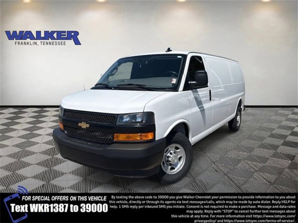 Express 2500 Work Van Cargo, 3D Extended Cargo Van, 4.3L V6, 8-Speed Automatic with Overdrive, RWD, Summit White, Medium Pewter Vinyl, 16 x 6.5 Steel Wheels, 2 Speakers, 3.42 Rear Axle Ratio, 4-Wheel Disc Brakes, 8-Point Digital Compass, ABS brakes, Air Conditioning, AM/FM radio, AM/FM Stereo w/MP3 Player, Auxiliary Lighting, Bluetooth® For Phone, Cruise Control, Delay-off headlights, Driver & Front Passenger High-Back Bucket Seats, Driver & Front Passenger Vinyl Visors, Driver Convenience Package, Driver door bin, Driver's Seat Mounted Armrest, Dual front impact airbags, Dual front side impact airbags, Electronic Stability Control, Emergency communication system: OnStar and Chevrolet connected services capable, Exterior Parking Camera Rear, Front anti-roll bar, Front Bucket Seats, Front Reclining High-Back Bucket Seats, Front wheel independent suspension, Full-Length Black Rubberized-Vinyl Floor Covering, Fully automatic headlights, Heated door mirrors, Heavy-Duty Rear Locking Differential, Leather-Wrapped Steering Wheel, Low tire pressure warning, Occupant sensing airbag, Overhead airbag, Passenger cancellable airbag, Passenger door bin, Passenger seat mounted armrest, Power door mirrors, Power steering, Power windows, Preferred Equipment Group 1WT, Reading Lights, Remote Keyless Entry, Seat-Mounted & Roof-Rail Side-Impact Airbags, Single-Zone Manual Air Conditioning, Sliding Passenger-Side Door, Steering Wheel Mounted Audio Controls, Tachometer, Theft Alarm Notification, Tilt Steering Wheel, Traction control, Trip computer, Underhood Lights, Variably intermittent wipers, Vinyl Seat Trim, Voltmeter.2023 Chevrolet Express 2500 Work Van Cargo 3D Extended Cargo Van RWD 8-Speed Automatic with Overdrive Summit White Odometer is 5822 miles below market average!Tax, title, license, and dealer fee of $789 (unless itemized above) are extra.Come see the friendly staff at Walker Chevrolet in Franklin. We'll work with you to make sure you get the right vehicle for your needs and your budget. Walker Chevrolet takes pride in being a part of the Middle-Tennessee community and we've been working hard to earn and keep the trust of our customers since 1926. Look no further than Walker Chevrolet; your local, family-owned dealership, putting our relationship with the customer first. Call us today at (615) 591-6000 or visit us online at www.walkerchevrolet.com.