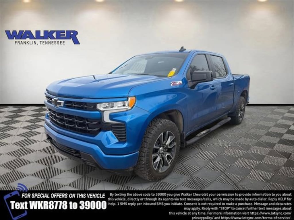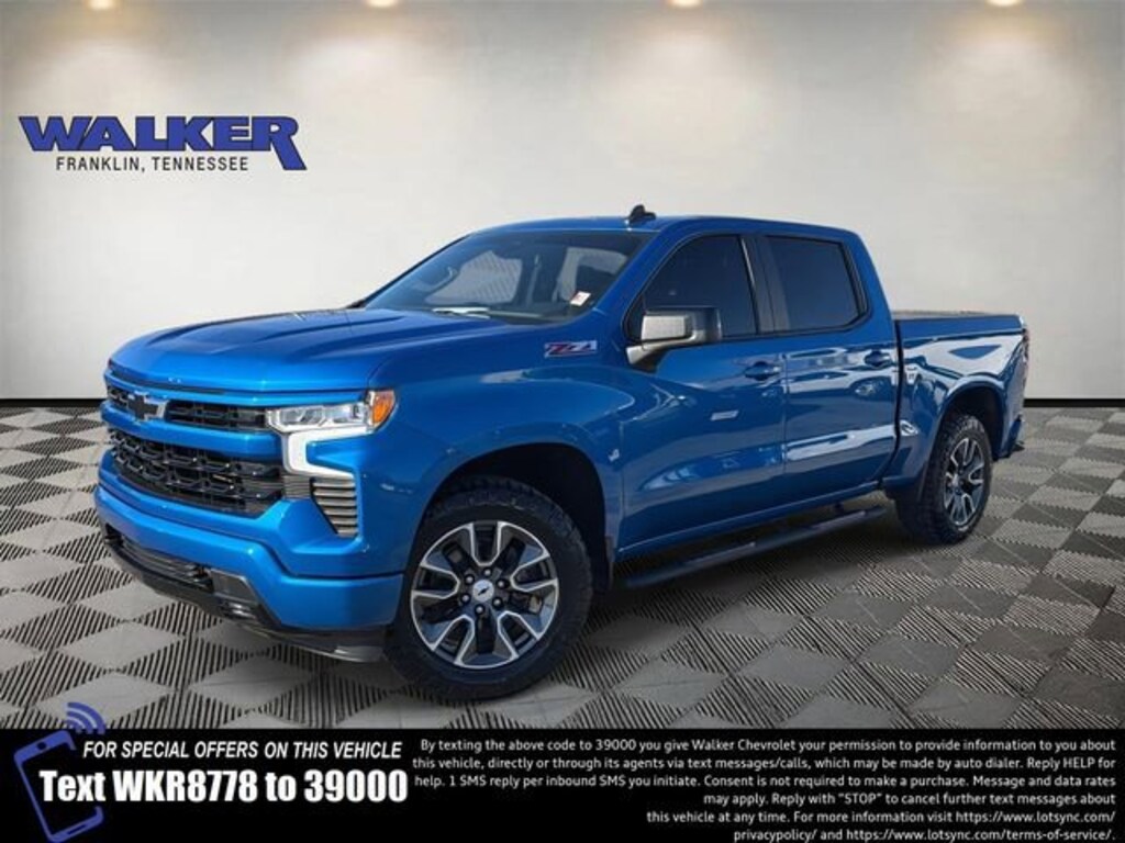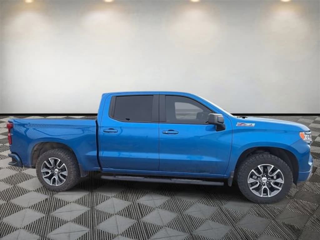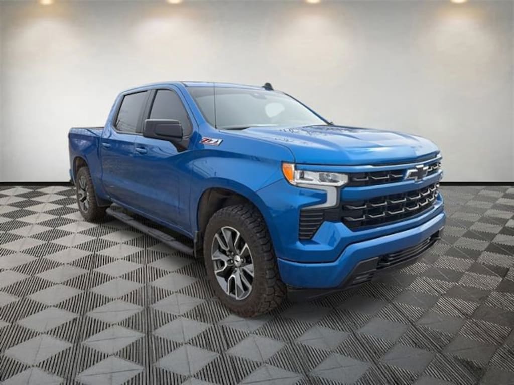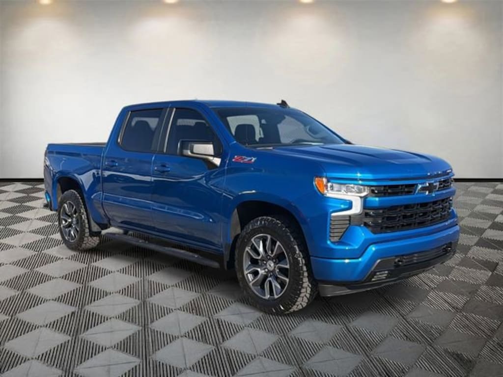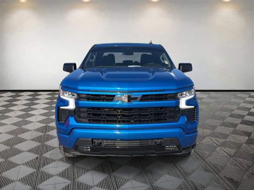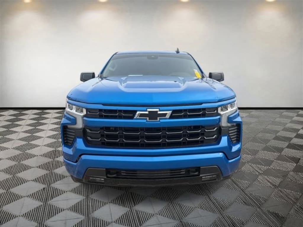 Silverado 1500 RST, 4D Crew Cab, EcoTec3 5.3L V8, 10-Speed Automatic, 4WD, Glacier Blue Metallic, Black Cloth, 10-Way Power Driver Seat w/Lumbar, 12.3 Multicolor Reconfigurable Digital Display, 120-Volt Bed Mounted Power Outlet, 120-Volt Instrument Panel Power Outlet, 170 Amp Alternator, 2 USB Data Ports, 220 Amp Alternator, 3.23 Rear Axle Ratio, 4-Wheel Disc Brakes, 40/20/40 Front Split-Bench Seat, 6 Speakers, 6-Speaker Audio System, ABS brakes, Air Conditioning, All-Star Edition, All-Weather Floor Liner (LPO) (AAK), Alloy wheels, AM/FM radio: SiriusXM with 360L, Apple CarPlay/Android Auto, Auto High-beam Headlights, Auto-Locking Rear Differential, Automatic Emergency Braking, Automatic temperature control, Auxiliary External Transmission Oil Cooler, Bluetooth® For Phone, Brake assist, Bumpers: body-color, Chevrolet Connected Access Capable, Chevytec Spray-On Black Bedliner, Cloth Seat Trim, Color-Keyed Carpeting Floor Covering, Compass, Convenience Package, Deep-Tinted Glass, Delay-off headlights, Driver door bin, Driver vanity mirror, Dual Exhaust w/Polished Outlets, Dual front impact airbags, Dual front side impact airbags, Dual Rear USB Ports (Charge Only), Dual-Zone Automatic Climate Control, Electric Rear-Window Defogger, Electrical Steering Column Lock, Electronic Cruise Control, Electronic Stability Control, Electronic Transmission Range Selector Shifter, External Engine Oil Cooler, EZ Lift Power Lock & Release Tailgate, Floor Mounted Center Console, Following Distance Indicator, Forward Collision Alert, Front anti-roll bar, Front Bucket Seats, Front Center Armrest w/Storage, Front dual zone A/C, Front fog lights, Front Frame-Mounted Black Recovery Hooks, Front LED Fog Lamps, Front Pedestrian Braking, Front reading lights, Front Rubberized Vinyl Floor Mats, Front wheel independent suspension, Fully automatic headlights, HD Rear Vision Camera, Heated door mirrors, Heated Driver & Front Outboard Passenger Seats, Heated front seats, Heated Power-Adjustable Outside Mirrors, Heated Steering Wheel, Heated steering wheel, Heavy-Duty Air Filter, High Gloss Black Mirror Caps, Hill Descent Control, Hitch Guidance, Illuminated entry, Inside Rear-View Mirror w/Tilt, IntelliBeam Automatic High Beam On/Off, Keyless Open & Start, Lane Keep Assist w/Lane Departure Warning, LED Cargo Area Lighting, Low tire pressure warning, Not Equipped w/Steering Column Lock, Occupant sensing airbag, Off-Road Suspension, OnStar & Chevrolet Connected Services Capable, Outside temperature display, Overhead airbag, Overhead console, Panic alarm, Passenger door bin, Passenger vanity mirror, Power door mirrors, Power driver seat, Power Front Windows w/Driver Express Up/Down, Power Front Windows w/Passenger Express Down, Power Rear Windows w/Express Down, Power steering, Power windows, Preferred Equipment Group 1SP, Premium audio system: Chevrolet Infotainment 3 Premium, Protection Package, Radio data system, Radio: Chevrolet Infotainment 3 Premium System, Rear 60/40 Folding Bench Seat (Folds Up), Rear reading lights, Rear Rubberized-Vinyl Floor Mats, Rear step bumper, Rear Wheelhouse Liners, Rear window defroster, Remote keyless entry, Remote Vehicle Starter System, Security system, SiriusXM w/360L, Speed control, Speed-sensing steering, Split folding rear seat, Standard Suspension Package, Standard Tailgate, Steering Wheel Audio Controls, Steering wheel mounted audio controls, Tachometer, Telescoping steering wheel, Theft Deterrent System (Unauthorized Entry), Tilt steering wheel, Traction control, Trailering Package, Trip computer, Variably intermittent wipers, Voltmeter, Wi-Fi Hot Spot Capable, Wireless Charging, Wireless Phone Projection, Wrapped Steering Wheel, Z71 Off-Road & Protection Package, Z71 Off-Road Package.