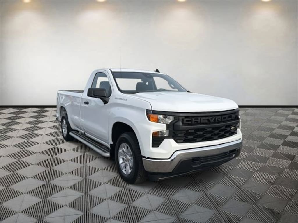 Silverado 1500 WT, 2D Standard Cab, EcoTec3 5.3L V8, 10-Speed Automatic, RWD, Summit White, Black Cloth, 170 Amp Alternator, 2 Speakers, 2-Speaker Audio System, 220 Amp Alternator, 3.5 Monochromatic Display Driver Info Center, 4-Wheel Disc Brakes, 40/20/40 Front Split Bench Seat, ABS brakes, Air Conditioning, Auto High-beam Headlights, Automatic Emergency Braking, Auxiliary External Transmission Oil Cooler, Black (Semi-Gloss) Front Bumper, Black (Semi-Gloss) Rear Bumper, Bluetooth® For Phone, Brake assist, Chevrolet Connected Access Capable, Compass, Delay-off headlights, Driver door bin, Dual front impact airbags, Dual front side impact airbags, Electrical Steering Column Lock, Electronic Cruise Control, Electronic Stability Control, External Engine Oil Cooler, EZ Lift Power Lock & Release Tailgate, Following Distance Indicator, Forward Collision Alert, Front anti-roll bar, Front Center Armrest w/Storage, Front Chrome Bumper, Front Frame-Mounted Black Recovery Hooks, Front Pedestrian Braking, Front reading lights, Front wheel independent suspension, Fully automatic headlights, HD Rear Vision Camera, Heated door mirrors, Heated Power-Adjustable Outside Mirrors, Illuminated entry, Inside Rear-View Mirror w/Tilt, IntelliBeam Automatic High Beam On/Off, Lane Keep Assist w/Lane Departure Warning, Locking Tailgate, Low tire pressure warning, Manual Tailgate Function w/No EZ Lift, Manual Tilt Wheel Steering Column, Occupant sensing airbag, OnStar & Chevrolet Connected Services Capable, Outside temperature display, Overhead airbag, Overhead console, Panic alarm, Passenger door bin, Passenger vanity mirror, Power door mirrors, Power Front Windows w/Driver Express Up/Down, Power Front Windows w/Passenger Express Down, Power steering, Power windows, Preferred Equipment Group 1WT, Premium audio system: Chevrolet Infotainment 3, Radio data system, Radio: Chevrolet Infotainment 3 System, Rear Chrome Bumper, Rear reading lights, Rear step bumper, Remote Keyless Entry, Remote keyless entry, Rubberized-Vinyl Floor Covering, SiriusXM Delete, Solar Absorbing Tinted Glass, Speed-sensing steering, Standard Suspension Package, Standard Tailgate, Tachometer, Tilt steering wheel, Traction control, Trip computer, Variably intermittent wipers, Vinyl Seat Trim, Voltmeter, Wheels: 17 x 8 Bright Silver Painted Aluminum, Wi-Fi Hot Spot Capable.