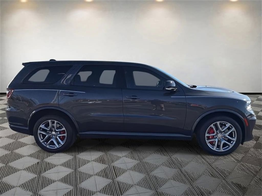Durango SRT 392, 4D Sport Utility, SRT HEMI 6.4L V8 MDS, 8-Speed Automatic, AWD, Vapor Gray, Black Leather, 2nd Row Mini Console w/Cupholders, 3.70 Rear Axle Ratio, 3rd Row Floor Mat & Mini Console, 3rd row seats: split-bench, 4-Wheel Disc Brakes, 7 & 4 Pin Wiring Harness, 9 Speakers, ABS brakes, Adaptive suspension, Air Conditioning, Alloy wheels, AM/FM radio: SiriusXM w/360L, Apple CarPlay/Android Auto, Audio memory, Auto High-beam Headlights, Auto-dimming door mirrors, Auto-dimming Rear-View mirror, Automatic temperature control, Blind Spot w/Trailer Detection, Brake assist, Bumpers: body-color, Class IV Receiver Hitch, Compass, Delay-off headlights, Driver door bin, Driver vanity mirror, Dual front impact airbags, Dual front side impact airbags, Electronic Stability Control, Emergency communication system, Four wheel independent suspension, Front anti-roll bar, Front Bucket Seats, Front Center Armrest w/Storage, Front dual zone A/C, Front reading lights, Fully automatic headlights, Garage door transmitter, Gloss Black Exterior Mirrors, Heated door mirrors, Heated front seats, Heated rear seats, Heated steering wheel, Illuminated entry, Knee airbag, Leather Shift Knob, Leather steering wheel, Leather Trimmed Bucket Seats, Low tire pressure warning, Memory seat, MOPAR Dual Stripes- Redline Red/Black, Navigation system: TomTom, Occupant sensing airbag, Outside temperature display, Overhead airbag, Overhead console, Panic alarm, ParkView Rear Back-Up Camera, Passenger door bin, Passenger vanity mirror, Power door mirrors, Power driver seat, Power Liftgate, Power passenger seat, Power steering, Power windows, Quick Order Package 29L SRT 392, Radio data system, Radio: Uconnect 5 Nav w/10.1 Display, Rain sensing wipers, Rear air conditioning, Rear anti-roll bar, Rear reading lights, Rear window defroster, Rear window wiper, Remote keyless entry, Security system, Speed control, Speed-sensing steering, Speed-Sensitive Wipers, Split folding rear seat, Spoiler, Sport steering wheel, Steering wheel mounted audio controls, Tachometer, Telescoping steering wheel, Tilt steering wheel, Traction control, Trailer Brake Control, Trailer Tow Group IV, Trip computer, Turn signal indicator mirrors, Variably intermittent wipers, Ventilated front seats, Voltmeter, Wheels: 20 x 10 Hyper Black Aluminum.
