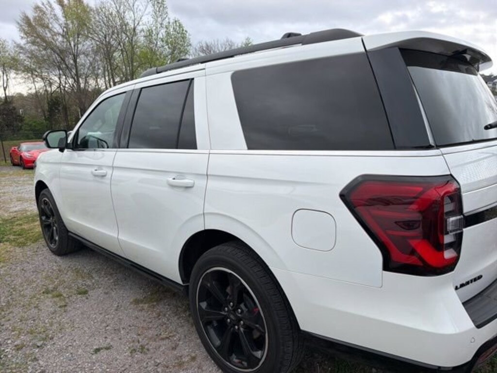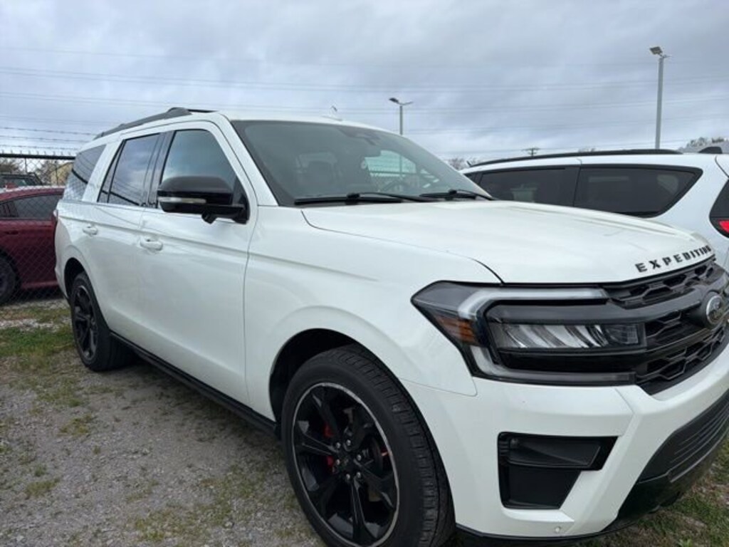 Expedition Limited, 4D Sport Utility, EcoBoost 3.5L V6 GTDi DOHC 24V Twin Turbocharged, 10-Speed Automatic, 4WD, Star White Metallic Tri-Coat, Black Onyx Leather, 12 Speakers, 15.5 LCD Capacitive Touchscreen, 1st & 2nd Row Floor Liners w/Carpet Mats, 1st & 2nd Row Floor Mats w/Logo, 3.73 Axle Ratio, 360-Degree Camera w/Split View, 360-Degree Camera w/Trailer Reverse Guidance, 3rd row seats: split-bench, 4-Wheel Disc Brakes, ABS brakes, Active Noise Control, Active Park Assist 2.0, Adjustable pedals, Advanced Cargo Manager, Air Conditioning, Alloy wheels, AM/FM radio: SiriusXM with 360L, Auto High-beam Headlights, Auto-dimming door mirrors, Auto-dimming Rear-View mirror, Automatic temperature control, Black Headlamp and Fog Lamp Bezels, Black Limited Tailgate Badge, Black Roof Rack Side Rails, Body Color Door Handles, Brake assist, Bumpers: body-color, Compass, Delay-off headlights, Driver door bin, Driver vanity mirror, Dual Exhaust System, Dual front impact airbags, Dual front side impact airbags, Ebony Black Power Deployable Running Boards, Ebony Black Tailgate Applique, Ebony Black Twin Spar Grille, Electronic Stability Control, Emergency communication system: SYNC 4 911 Assist, Equipment Group 300A Stealth Performance Package, Expedition Lettering on Hood, Exterior Parking Camera Rear, Four wheel independent suspension, Front anti-roll bar, Front Bucket Seats, Front Center Armrest, Front dual zone A/C, Front fog lights, Front reading lights, Fully automatic headlights, Garage door transmitter, Heated & Ventilated Leather Front Captain's Chairs, Heated door mirrors, Heated front seats, Heated rear seats, Heated steering wheel, Heated/Ventilated Lthr Front Captain's Chairs (A), Heavy-Duty Trailer Tow Package, Illuminated entry, Instrument Panel Cluster, Integrated Trailer Brake Controller, Leather steering wheel, LED Taillamp w/Black Bezels, Low tire pressure warning, Memory seat, Navigation system: Connected Navigation, Occupant sensing airbag, Outside temperature display, Overhead airbag, Overhead console, Panic alarm, Panoramic Vista Roof, Passenger door bin, Passenger vanity mirror, Pedal memory, Power door mirrors, Power driver seat, Power Liftgate, Power moonroof, Power passenger seat, Power steering, Power windows, Power-Folding Sideview Mirrors w/Autofold, Pro Trailer Backup Assist, Radio data system, Radio: B&O Sound System by Bang & Olufsen, Rain sensing wipers, Rear air conditioning, Rear anti-roll bar, Rear reading lights, Rear window defroster, Rear window wiper, Reclining 3rd row seat, Red Brake Calipers, Remote keyless entry, Reverse Brake Assist, Reversible Cargo Mat, Security system, SiriusXM w/360L, Speed control, Speed-sensing steering, Speed-Sensitive Wipers, Split folding rear seat, Spoiler, Sport Center Console, Sport-Tuned Suspension, Stealth Performance Edition Package, Steering wheel memory, Steering wheel mounted audio controls, SYNC 4 w/Enhanced Voice Recognition, SYNC 4A w/Enhanced Voice Recognition, Tachometer, Telescoping steering wheel, Tilt steering wheel, Traction control, Trip computer, Turn signal indicator mirrors, Variably intermittent wipers, Ventilated front seats, Voltmeter, Wheels: 22 Premium Black-Painted Aluminum.