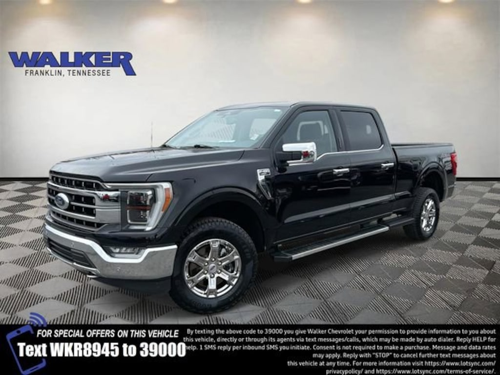 F-150 Lariat, 4D SuperCrew, 5.0L V8, 10-Speed Automatic, 4WD, Agate Black Metallic, Black Leather, 2nd Row Heated Seats, 3.31 Axle Ratio, 4-Wheel Disc Brakes, 6 Bright Polished Running Board, 7 Speakers, ABS brakes, Adjustable pedals, Air Conditioning, Alloy wheels, AM/FM radio: SiriusXM with 360L, Auto High-beam Headlights, Auto Start-Stop Removal, Auto-dimming door mirrors, Auto-dimming Rear-View mirror, Automatic temperature control, Brake assist, Bumpers: chrome, Chrome 2-Bar Grille w/4 Minor Bars, Chrome Door & Tailgate Handles w/Body-Color Bezel, Chrome Single-Tip Exhaust, Chrome Skull Caps on Exterior Mirrors, Class IV Trailer Hitch Receiver, Compass, Connected Built-In Navigation, Delay-off headlights, Driver door bin, Driver vanity mirror, Dual front impact airbags, Dual front side impact airbags, Electronic Stability Control, Emergency communication system: SYNC 4 911 Assist, Equipment Group 502A High, Evasive Steering Assist, Extended Range 36 Gallon Fuel Tank, Exterior Parking Camera Rear, Ford Co-Pilot360 Assist 2.0 (DISC), Front anti-roll bar, Front Center Armrest w/Storage, Front dual zone A/C, Front fog lights, Front reading lights, Front wheel independent suspension, Fully automatic headlights, Heated door mirrors, Heated front seats, Heated Steering Wheel, Illuminated entry, Intelligent Adaptive Cruise Control w/Stop & Go, Intersection Assist, Lariat Chrome Appearance Package, Leather-Trimmed 40/20/40 Front Seat, Leather-Trimmed Bucket Seats, LED Projector w/Dynamic Bending Headlamps, LED Sideview Mirror Spotlights, Low tire pressure warning, Memory seat, Occupant sensing airbag, Onboard 400W Outlet, Outside temperature display, Overhead airbag, Overhead console, Panic alarm, Passenger door bin, Passenger vanity mirror, Pedal memory, Power door mirrors, Power driver seat, Power Glass Sideview Mirr w/Chrome Skull Caps, Power passenger seat, Power steering, Power Tilt/Telescoping Steering Column w/Memory, Power windows, Radio data system, Radio: AM/FM SiriusXM w/360L, Radio: B&O Sound System by Bang & Olufsen, Rain-Sensing Wipers, Rear reading lights, Rear seat center armrest, Rear step bumper, Rear window defroster, Remote keyless entry, Security system, Speed control, Speed Sign Recognition, Speed-sensing steering, Split folding rear seat, Steering wheel mounted audio controls, SYNC 4 w/Enhanced Voice Recognition, Tachometer, Telescoping steering wheel, Tilt steering wheel, Traction control, Trip computer, Turn signal indicator mirrors, Twin Panel Moonroof, Universal Garage Door Opener, Variably intermittent wipers, Ventilated front seats, Voltmeter, Wheels: 18 Chrome-Like PVD, Wireless Charging Pad.
