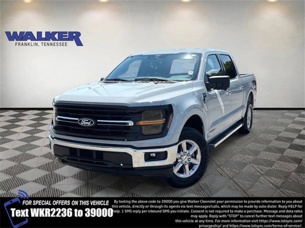 F-150 XLT, 4D SuperCrew, 3.5L PowerBoost Full-Hybrid V6, 10-Speed Automatic, 4WD, Avalanche, Black W/Medium Dark Slate Cloth, 3.31 Axle Ratio, 4-Wheel Disc Brakes, 6 Speakers, ABS brakes, Air Conditioning, Alloy wheels, AM/FM radio: SiriusXM with 360L, Auto High-beam Headlights, Auto-dimming Rear-View mirror, Automatic temperature control, Brake assist, Bumpers: chrome, Chrome wheels, Cloth 40/20/40 Front Seat, Compass, Delay-off headlights, Driver door bin, Driver vanity mirror, Dual front impact airbags, Dual front side impact airbags, Electronic Stability Control, Emergency communication system: SYNC 4 911 Assist, Front anti-roll bar, Front Center Armrest w/Storage, Front dual zone A/C, Front fog lights, Front reading lights, Front wheel independent suspension, Fully automatic headlights, Heated door mirrors, Illuminated entry, Low tire pressure warning, Navigation system: Connected Navigation, Occupant sensing airbag, Outside temperature display, Overhead airbag, Overhead console, Panic alarm, Passenger door bin, Passenger vanity mirror, Power door mirrors, Power driver seat, Power steering, Power windows, Radio data system, Radio: AM/FM SiriusXM w/360L, Rear reading lights, Rear step bumper, Rear window defroster, Remote keyless entry, Security system, Speed control, Split folding rear seat, Steering wheel mounted audio controls, SYNC 4 w/Enhanced Voice Recognition, Tachometer, Telescoping steering wheel, Tilt steering wheel, Traction control, Trip computer, Variably intermittent wipers, Voltmeter, Wheels: 18 Chrome-Like PVD.2024 Ford F-150 XLT 4D SuperCrew 4WD 10-Speed Automatic AvalancheTax, title, license, and dealer fee of $789 (unless itemized above) are extra.Come see the friendly staff at Walker Chevrolet in Franklin. We'll work with you to make sure you get the right vehicle for your needs and your budget. Walker Chevrolet takes pride in being a part of the Middle-Tennessee community and we've been working hard to earn and keep the trust of our customers since 1926. Look no further than Walker Chevrolet; your local, family-owned dealership, putting our relationship with the customer first. Call us today at (615) 591-6000 or visit us online at www.walkerchevrolet.com.
