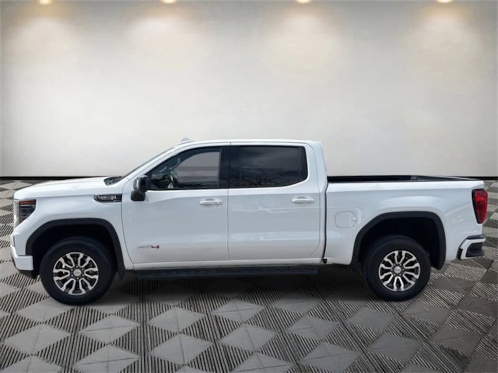 Sierra 1500 AT4, 4D Crew Cab, EcoTec3 6.2L V8, 10-Speed Automatic, 4WD, Summit White, Jet Black With Kalahari Accents Leather, 10-Way Power Driver Seat Adjuster w/Lumbar, 10-Way Power Passenger Seat Adjuster w/Lumbar, 120-Volt Bed Mounted Power Outlet, 120-Volt Instrument Panel Power Outlet, 170 Amp Alternator, 18 x 8.5 Machined Aluminum Wheels, 2 Charge/Data USB Ports Inside Center Console, 2 Type-C Charge-Only Rear USB Ports, 2 USB Ports, 220 Amp Alternator, 3.23 Rear Axle Ratio, 4-Wheel Disc Brakes, 7 Speakers, ABS brakes, Air Conditioning, Alloy wheels, AM/FM radio, Apple CarPlay/Android Auto, Auto High-beam Headlights, Auto-dimming door mirrors, Auto-dimming Rear-View mirror, Auto-Locking Rear Differential, Automatic Emergency Braking, Automatic temperature control, Auxiliary External Transmission Oil Cooler, Black Chrome Header & Grille Insert Bars, Block heater, Brake assist, Buckle to Drive, Bumpers: body-color, Color-Keyed Carpeting Floor Covering, Compass, Deep-Tinted Glass, Delay-off headlights, Driver door bin, Driver Memory, Driver vanity mirror, Dual front impact airbags, Dual front side impact airbags, Electric Rear-Window Defogger, Electrical Steering Column Lock, Electronic Stability Control, Emergency communication system: OnStar and GMC connected services capable, Engine Block Heater, External Engine Oil Cooling, Floor-Mounted Center Console, Following Distance Indicator, Forward Collision Alert, Front anti-roll bar, Front Bucket Seats, Front Center Armrest, Front dual zone A/C, Front fog lights, Front License Plate Kit, Front Pedestrian Braking, Front Prem Floor Liners w/Removable Carpet Insert, Front Rainsensing Wipers, Front reading lights, Front wheel independent suspension, Fully automatic headlights, GMC Connected Access Capable, HD Surround Vision, Heated 2nd Row Outboard Seats, Heated door mirrors, Heated Driver & Front Outboard Passenger Seating, Heated front seats, Heated rear seats, Heated steering wheel, Heavy-Duty Air Filter, Hill Descent Control, Hitch Guidance, Hitch Guidance w/Hitch View, Illuminated entry, In-Vehicle Trailering App, Integrated Trailer Brake Controller, IntelliBeam Automatic High Beam On/Off, Keyless Open & Start, Lane Keep Assist w/Lane Departure Warning, LED Cargo Area Lighting, Low tire pressure warning, Memory seat, Navigation System, Not Equipped w/Steering Column Lock, Occupant sensing airbag, Off-Road Suspension, OnStar & GMC Connected Services Capable, Outside temperature display, Overhead airbag, Overhead console, Panic alarm, Passenger door bin, Passenger vanity mirror, Perforated Front Leather Seat Trim, Perimeter Lighting, Power Door Locks, Power door mirrors, Power driver seat, Power Front Passenger Windows w/Express Up/Down, Power Front Windows w/Driver Express Up/Down, Power passenger seat, Power Rake & Telescoping Steering Column, Power Rear Windows w/Express Down, Power steering, Power windows, Preferred Equipment Group 4SB, Premium audio system: GMC Infotainment System, Premium Bose 7-Speaker Sound System, Push Button Start, Radio data system, Radio: Premium GMC Infotainment Audio System, Rain sensing wipers, Rear Cross Traffic Braking, Rear Pedestrian Detection, Rear Prem Floor Liners w/Removable Carpet Insert, Rear reading lights, Rear seat center armrest, Rear step bumper, Rear Wheelhouse Liners, Rear window defroster, Red Recovery Hooks, Remote keyless entry, Remote Vehicle Starter System, Safety Alert Seat, Security system, SiriusXM w/360L, Speed control, Speed-sensing steering, Split folding rear seat, Spray-On Pickup Bed Liner w/AT4 Logo, Steering Wheel Audio Controls, Steering wheel mounted audio controls, Tachometer, Telescoping steering wheel, Theft Deterrent System (Unauthorized Entry), Tilt steering wheel, Traction control, Trailer Camera Provisions, Trailer Side Blind Zone Alert, Trailering Package, Trip computer, Ultrasonic Front & Rear Park Assist, Variably intermittent wipers, Ventilated Drive