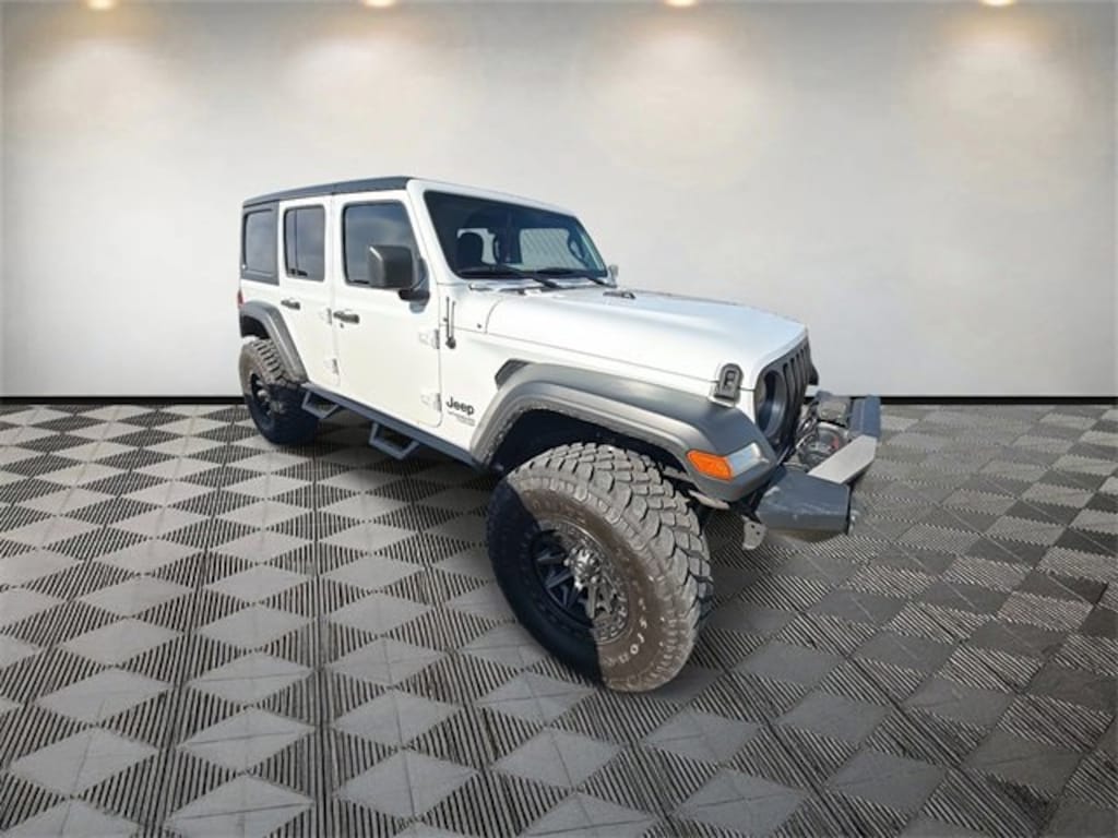 Wrangler Unlimited Sport S, 4D Sport Utility, 2.0L I4 DOHC, 8-Speed Automatic, 4WD, Bright White Clearcoat, Black Cloth, 3.45 Rear Axle Ratio, 4-Wheel Disc Brakes, 7.0 Touchscreen Display, 8 Speakers, ABS brakes, Air Conditioning, Air Conditioning w/Auto Temperature Control, Air Filtering, AM/FM radio, Apple CarPlay, Automatic Headlamps, Aux Battery, Black 3-Piece Hard Top, Brake assist, Cloth Low-Back Bucket Seats, Cluster 7.0 TFT Color Display, Cold Weather Group, Compass, Convenience Group, Deep Tint Sunscreen Windows, Delay-off headlights, Driver door bin, Driver vanity mirror, Dual front impact airbags, Dual front side impact airbags, Electronic Stability Control, For More Info, Call 800-643-2112, Freedom Panel Storage Bag, Front 1-Touch Down Power Windows, Front anti-roll bar, Front Bucket Seats, Front Center Armrest w/Storage, Front fog lights, Front reading lights, Google Android Auto, GPS Antenna Input, Heated Front Seats, Heated Steering Wheel, Integrated Center Stack Radio, Integrated roll-over protection, Leather Wrapped Steering Wheel, Low tire pressure warning, Manufacturer's Statement of Origin, MOPAR Lower Body Side Graphic, MOPAR Satin Black Grille, No Soft Top, Non-Lock Fuel Cap w/o Discriminator, Normal Duty Suspension, Occupant sensing airbag, Outside temperature display, ParkView Rear Back-Up Camera, Passenger door bin, Passenger vanity mirror, Power Heated Mirrors, Power steering, Quick Order Package 22S Sport S, Radio data system, Radio: Uconnect 3 w/5 Display, Radio: Uconnect 4 w/7 Display, Rear anti-roll bar, Rear reading lights, Rear Window Defroster, Rear Window Wiper/Washer, Remote Keyless Entry, Security Alarm, Side Steps, SiriusXM Radio Service, SiriusXM Satellite Radio, Speed control, Speed Sensitive Power Locks, Split folding rear seat, Sport S, Steering wheel mounted audio controls, Stop-Start Dual Battery System, Sun Visors w/Illuminated Vanity Mirrors, Tachometer, Technology Group, Telescoping steering wheel, Tilt steering wheel, Traction control, Trip computer, Universal Garage Door Opener, USB Host Flip, Variably intermittent wipers, Wheels: 17 x 7.5 Tech Silver Aluminum.