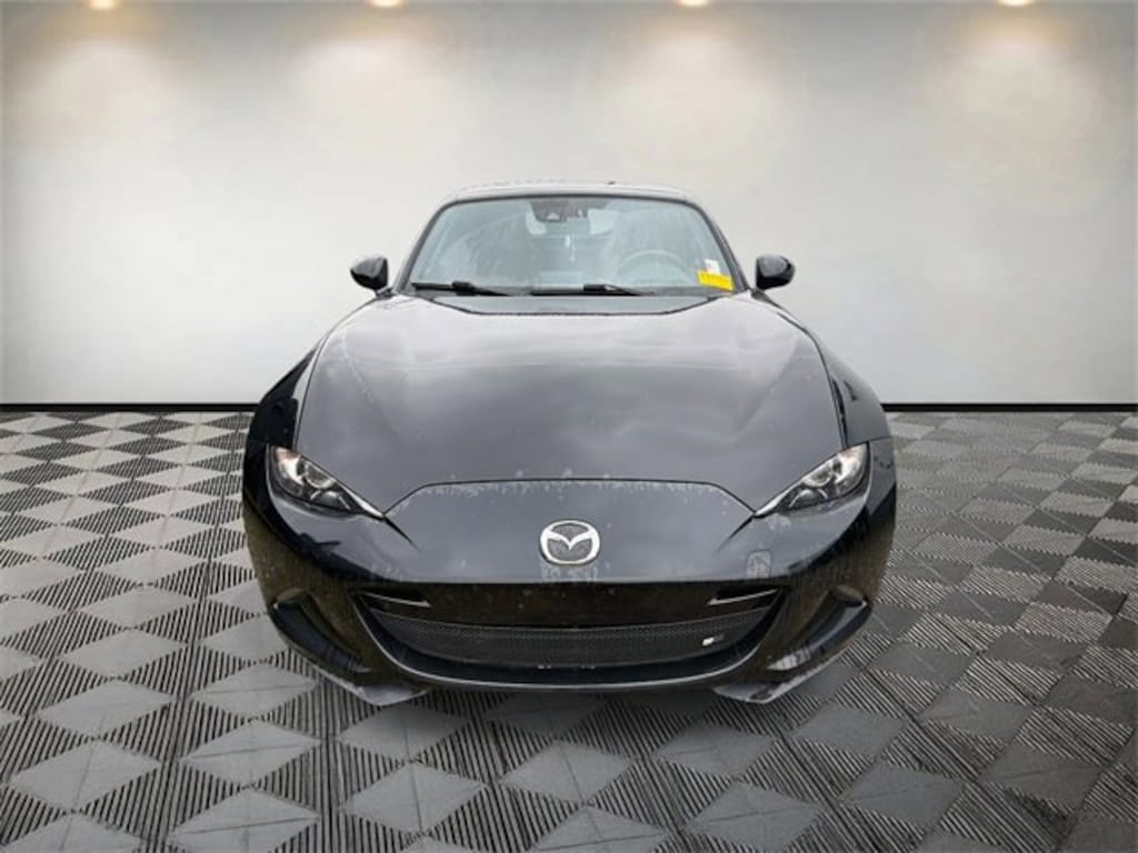 Miata RF Grand Touring, 2D Convertible, I4, 6-Speed Automatic Sport, RWD, Jet Black Mica, Auburn Leather, 4-Wheel Disc Brakes, 9 Speakers, ABS brakes, Air Conditioning, Alloy wheels, AM/FM radio: SiriusXM, AM/FM Sound System w/Navigation, Auto High-beam Headlights, Auto-dimming door mirrors, Auto-dimming Rear-View mirror, Automatic temperature control, BOSE Audio System, Brake assist, Bumpers: body-color, Convertible HardTop, Convertible roof lining, Convertible roof wind blocker, Delay-off headlights, Driver vanity mirror, Dual front impact airbags, Dual front side impact airbags, Electronic Stability Control, Emergency communication system: MAZDA CONNECT, Exterior Parking Camera Rear, Four wheel independent suspension, Front anti-roll bar, Front Bucket Seats, Front Center Armrest, Fully automatic headlights, Garage door transmitter: HomeLink, Glass rear window, Heated door mirrors, Heated front seats, Illuminated entry, Leather Shift Knob, Leather Upholstery, Low tire pressure warning, MAZDA CONNECT Infotainment System, Navigation System, Occupant sensing airbag, Outside temperature display, Panic alarm, Passenger vanity mirror, Power convertible roof, Power door mirrors, Power steering, Power windows, Radio data system, Rain sensing wipers, Rear anti-roll bar, Rear window defroster, Reclining Heated Front Bucket Seats, Remote keyless entry, Speed control, Speed-sensing steering, Sport steering wheel, Steering wheel mounted audio controls, Tachometer, Telescoping steering wheel, Tilt steering wheel, Traction control, Trip computer, Variably intermittent wipers, Wheel Locks - 17mm (DISC), Wheels: 17 x 7 Dark Silver Aluminum Alloy.