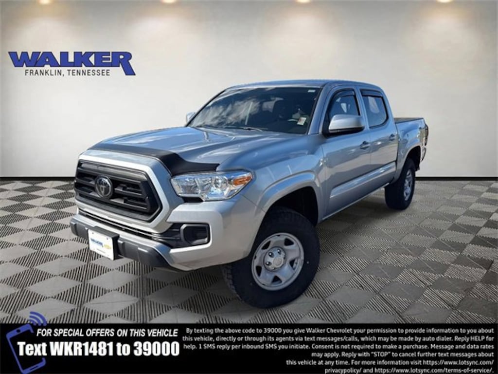 Tacoma SR V6, 4D Double Cab, 3.5L V6 PDI DOHC 24V LEV3-ULEV70 278hp, 6-Speed Automatic, 4WD, Silver, Cement Cloth, 6 Speakers, ABS brakes, Air Conditioning, AM/FM radio: SiriusXM, AM/FM Stereo, Anti-whiplash front head restraints, Apple CarPlay/Android Auto, Auto High-beam Headlights, Automatic temperature control, Axle Ratio: 3.91, Brake assist, Bumpers: body-color, Driver door bin, Dual front impact airbags, Dual front side impact airbags, Electronic Stability Control, Emergency communication system: Safety Connect with 1-year trial, Exterior Parking Camera Rear, Fabric Seat Trim (FB), Front anti-roll bar, Front Bucket Seats, Front Center Armrest, Front dual zone A/C, Front reading lights, Front Seats, Front wheel independent suspension, Illuminated entry, Knee airbag, Low tire pressure warning, Occupant sensing airbag, Outside temperature display, Overhead airbag, Overhead console, Passenger door bin, Power door mirrors, Power steering, Power windows, Rear step bumper, Speed control, Speed-sensing steering, Split folding rear seat, Steering wheel mounted audio controls, Tachometer, Telescoping steering wheel, Tilt steering wheel, Traction control, Variably intermittent wipers, Wheels: 16 x 7J Style Steel Disc.
