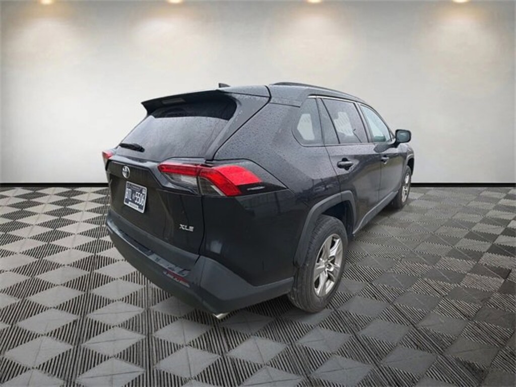 RAV4 XLE, 4D Sport Utility, 2.5L 4-Cylinder DOHC Dual VVT-i, 8-Speed Automatic, FWD, Black, Black Cloth, 4-Wheel Disc Brakes, 6 Speakers, ABS brakes, Air Conditioning, Alloy wheels, AM/FM radio: SiriusXM, Auto High-beam Headlights, Automatic temperature control, Axle Ratio: 3.177, Brake assist, Bumpers: body-color, Delay-off headlights, Driver door bin, Driver vanity mirror, Dual front impact airbags, Dual front side impact airbags, Electronic Stability Control, Emergency communication system: Safety Connect (10-year trial), Exterior Parking Camera Rear, Fabric Seat Trim, Four wheel independent suspension, Front anti-roll bar, Front Bucket Seats, Front Center Armrest, Front dual zone A/C, Front reading lights, Fully automatic headlights, Heated door mirrors, Illuminated entry, Knee airbag, Low tire pressure warning, Occupant sensing airbag, Outside temperature display, Overhead airbag, Overhead console, Panic alarm, Passenger door bin, Passenger vanity mirror, Power door mirrors, Power driver seat, Power steering, Power windows, Radio data system, Radio: AM/FM/XM Audio System, Rear anti-roll bar, Rear seat center armrest, Rear window defroster, Rear window wiper, Remote keyless entry, Speed control, Speed-sensing steering, Split folding rear seat, Spoiler, Steering wheel mounted audio controls, Tachometer, Telescoping steering wheel, Tilt steering wheel, Traction control, Trip computer, Turn signal indicator mirrors, Variably intermittent wipers, Wheels: 17 5-Spoke Silver Alloy.